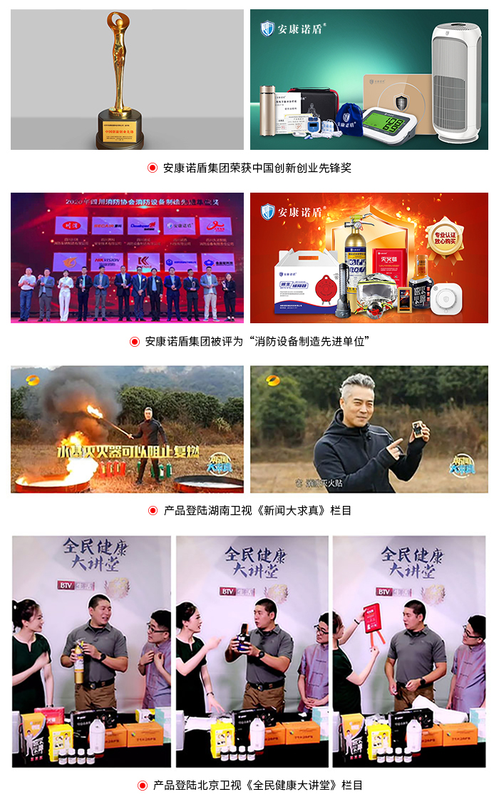 長期以來,安康諾盾集團深耕消防、健康領域多年,憑借專業技術和豐富經驗,構建起從研發、生產到用戶服務的全產業鏈條。集團旗下產品通過多個專業機構認證,榮獲多項專利證書,并被授予中國創新創業先鋒獎。