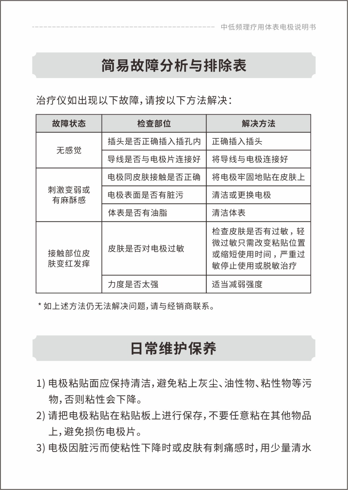 中低頻理療用體表電極貼片說明書